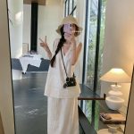 | nameOriginal | Lazy Style V-neck Vest Top Drawstring Rear Split Casual Skirt Women's Summer New Fashion suit Chic |