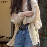 سترة كسول للحماية من الشمس بأكمام طويلة قميص نسائي رفيع أنيق 2024 صيف جديد تصميم فضفاض يشعر شعر صغير