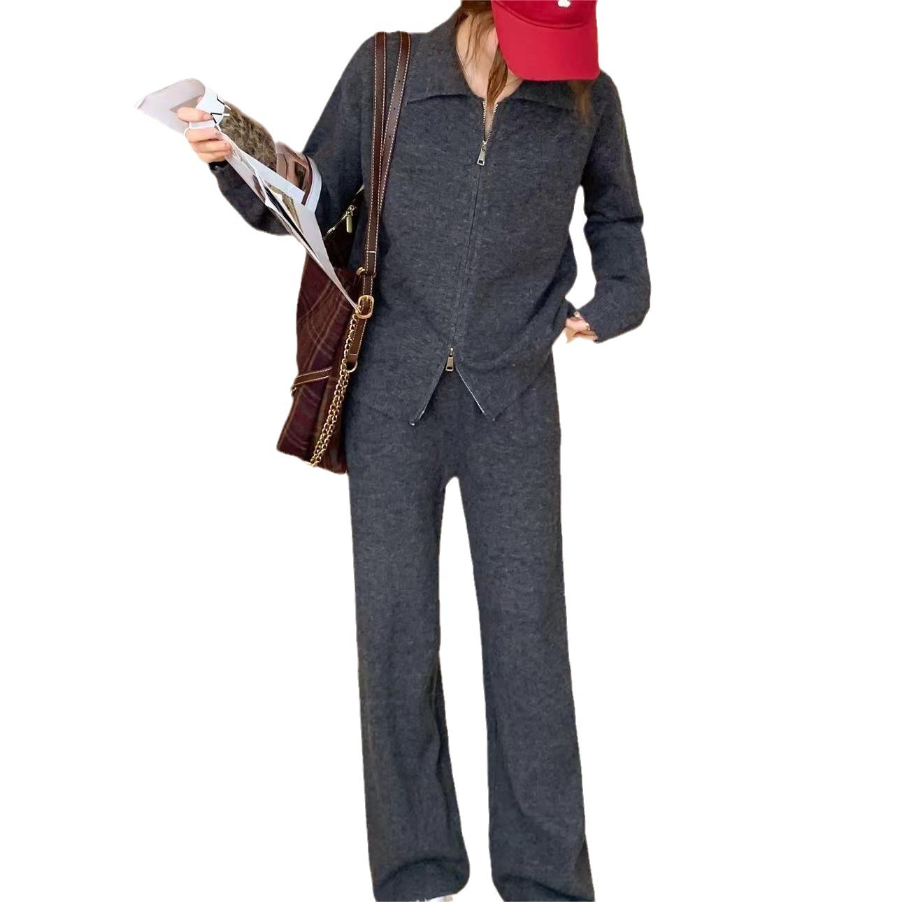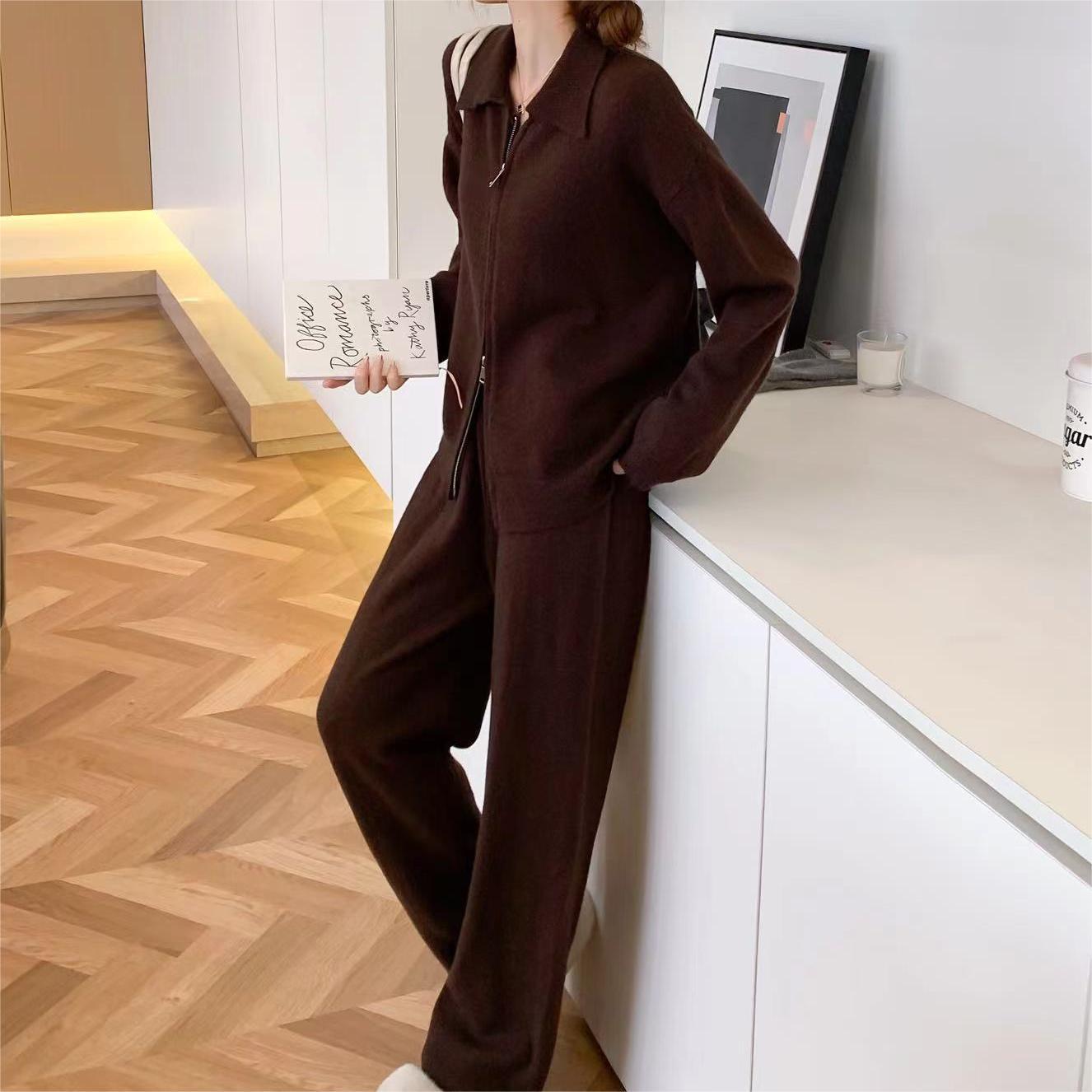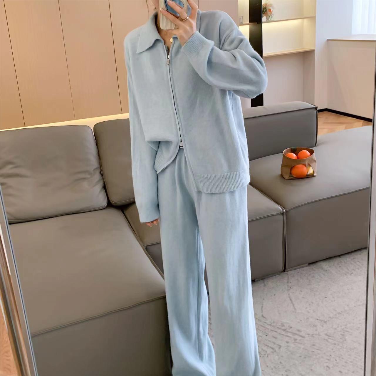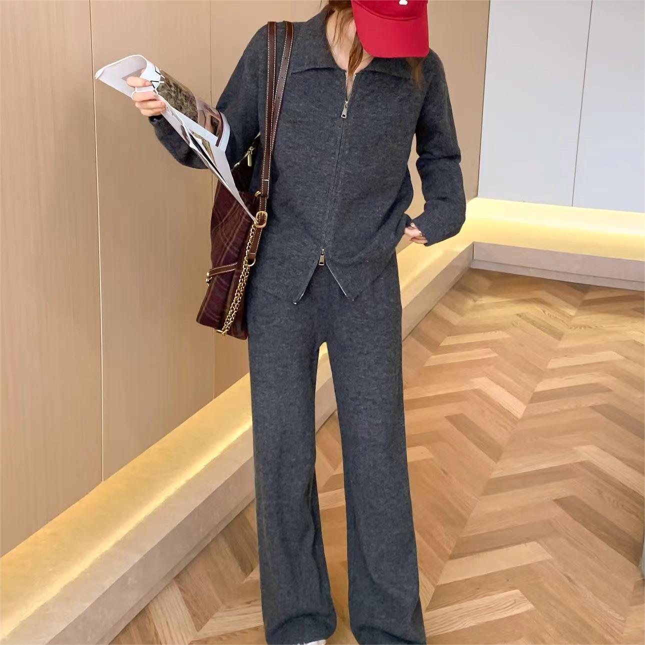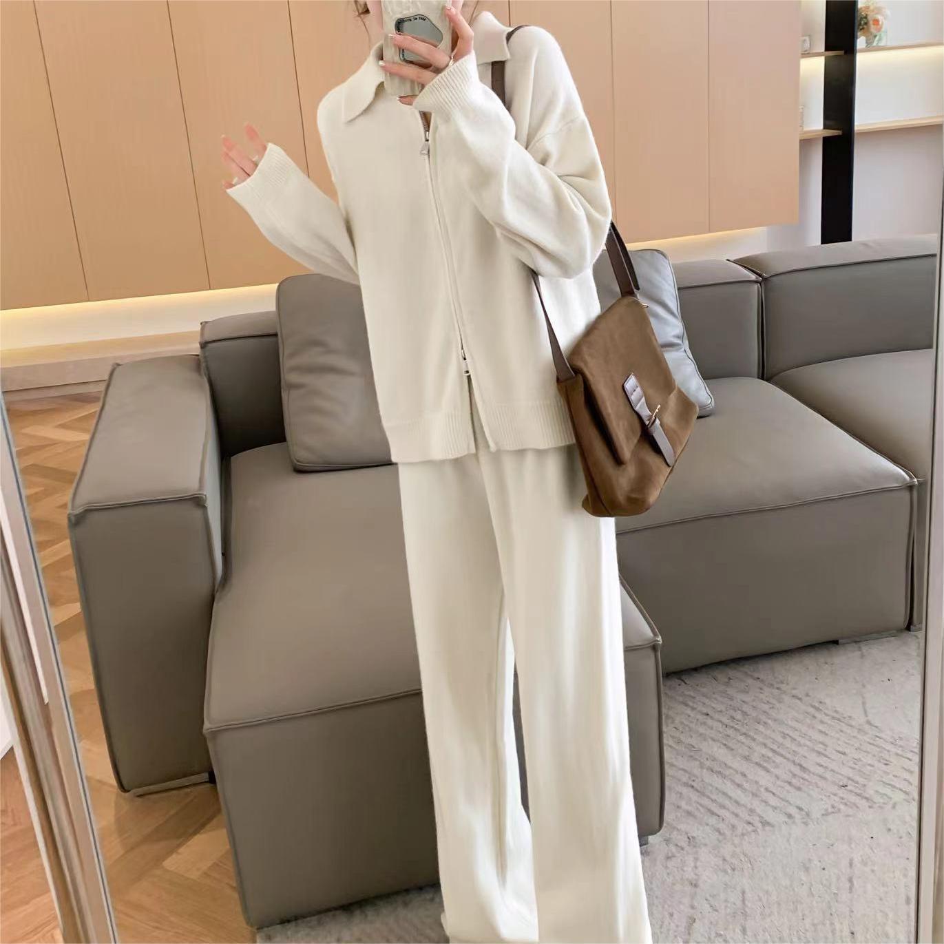 | nameOriginal | Lazy Wear Thickened Elegant Knitted suit Autumn and Winter New Academy-style Simple Slimming Wide-leg Pants Two-piece Set for Women |