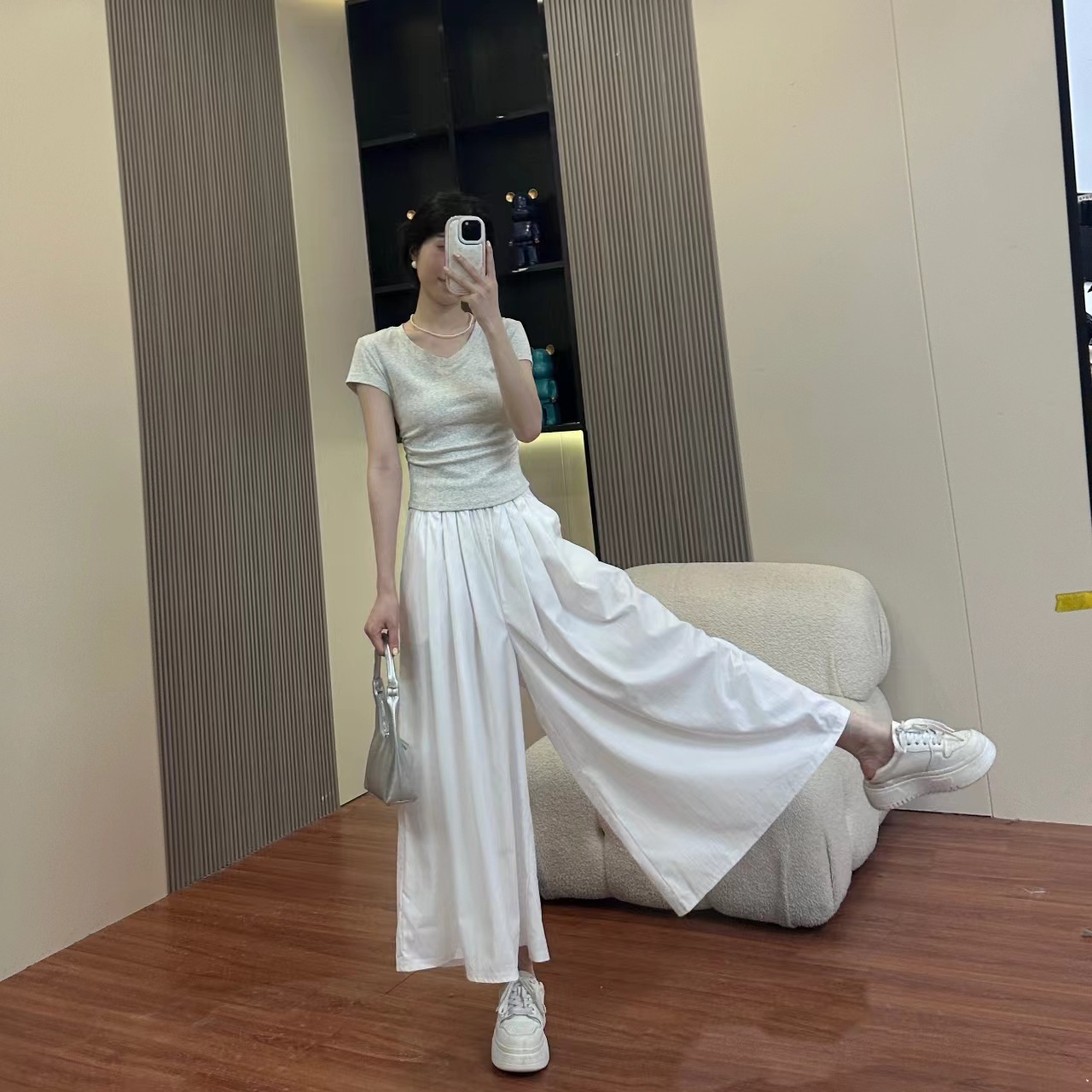 Lazy wind skirt pants women's spring and summer 2024 new high waist slim pants loose skirt pants 21001Z other thin pants