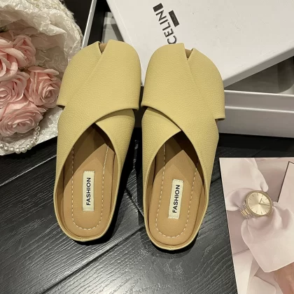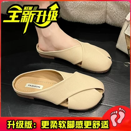 Lazy women's summer fashionable anti-slip flat half slippers for pregnant women