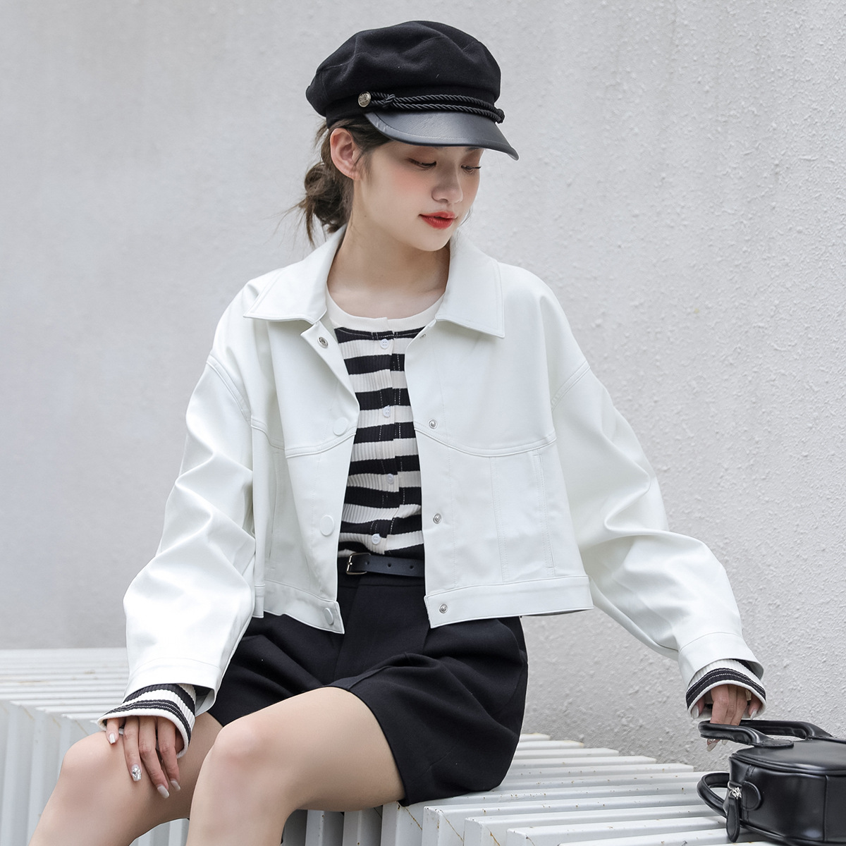 معطف جلد المرأة 2023 الخريف والشتاء جديد الكورية نمط قصيرة Ins وسيم كل مباراة التلبيب بولي Leather الجلود الاسترجاع العصرية