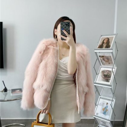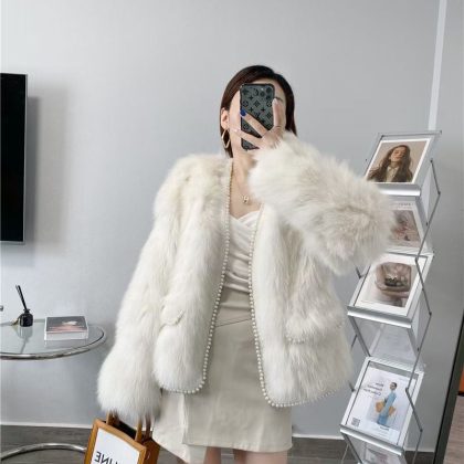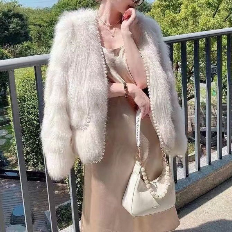 | nameOriginal | Leather Coat Women's New 2024 Imitation Leather V-Neck Beaded Stitching Top Stylish All-match Fashionable Thickened |