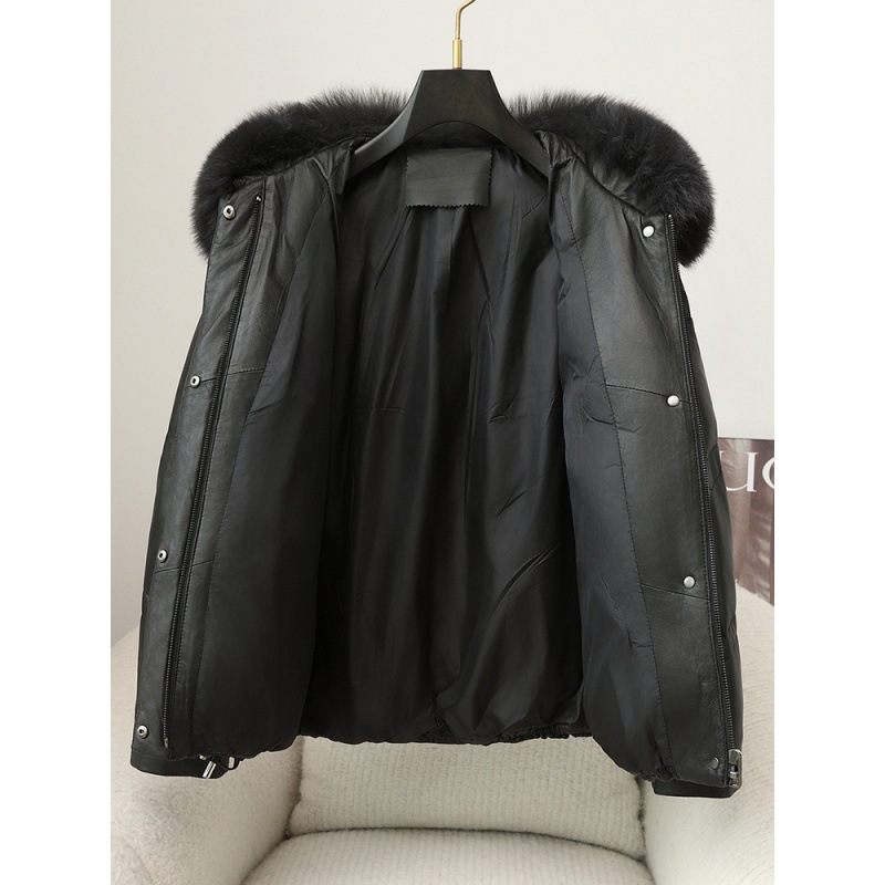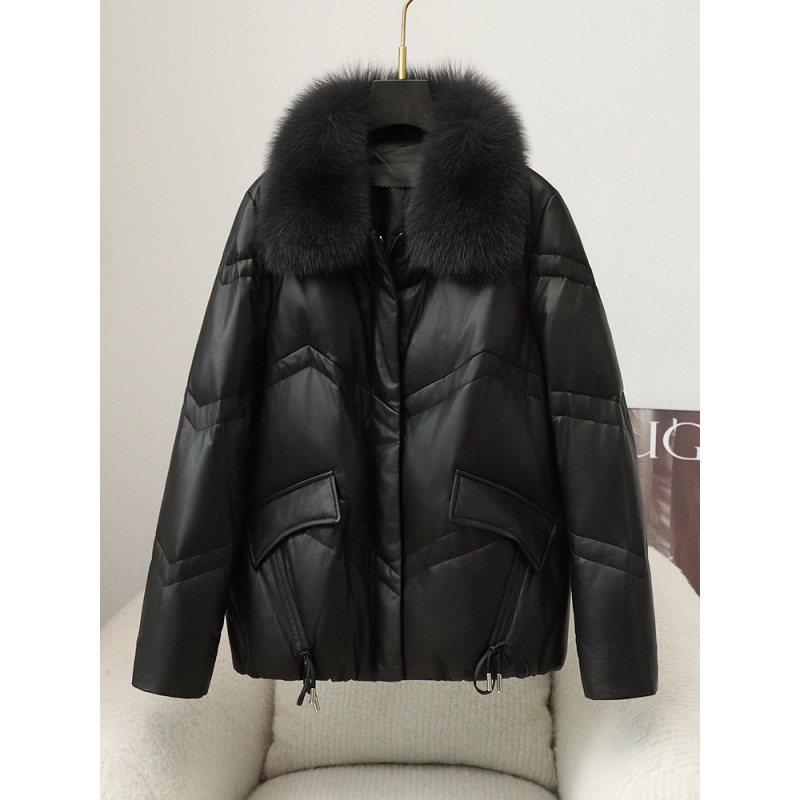 | nameOriginal | Leather Down Jacket Women's White Duck Down 2024 Autumn and Winter New Leather Fox Fur Haining Leather Coat Women's Mid-length |