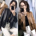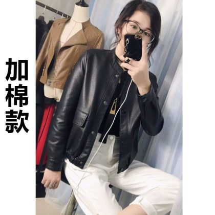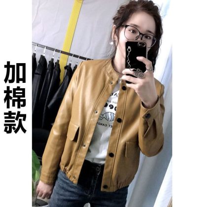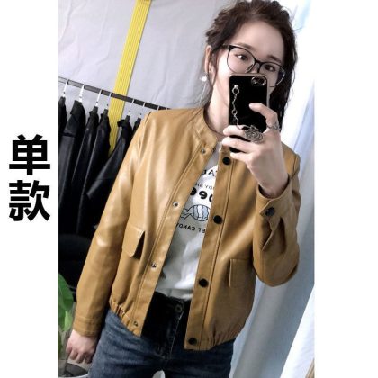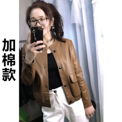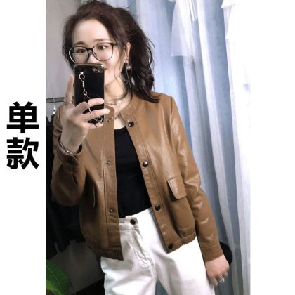 nameOriginal | Leather Jacket Women's 2022 New Spring and Autumn Short Korean Style Loose Western Style Round Neck Petite Biker Suit Leather Jacket |