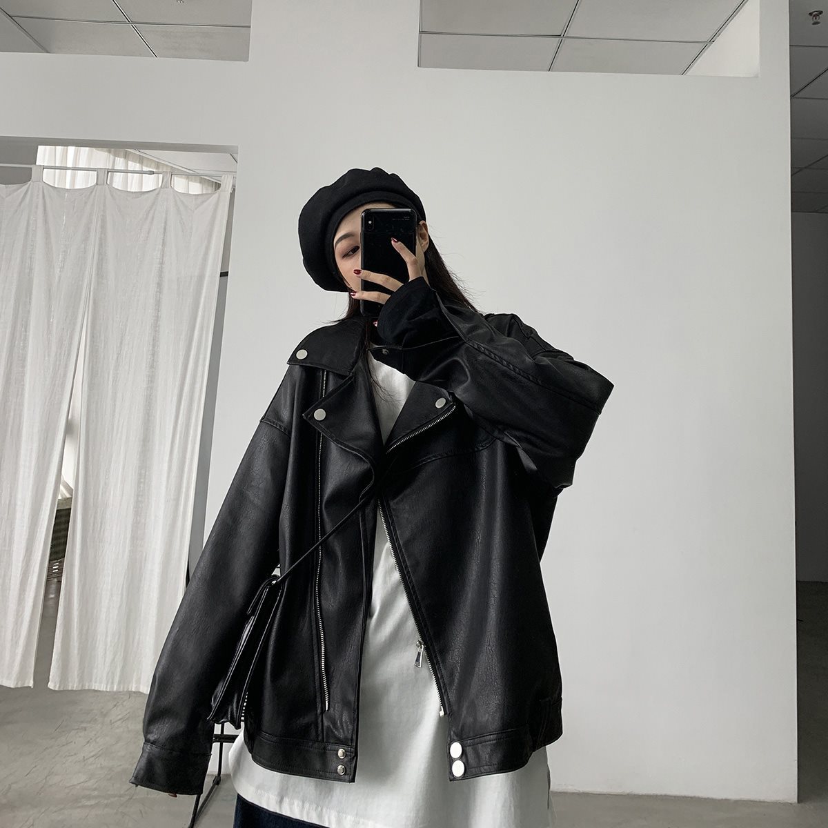 Leather Jacket Women's 2024 New Spring and Autumn Short Korean Loose Retro Casual Hong Kong Style Motorcycle PU Leather Jacket