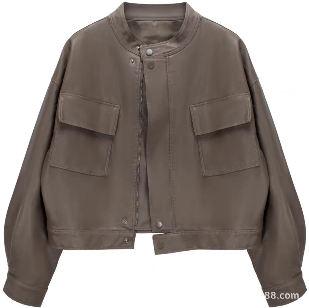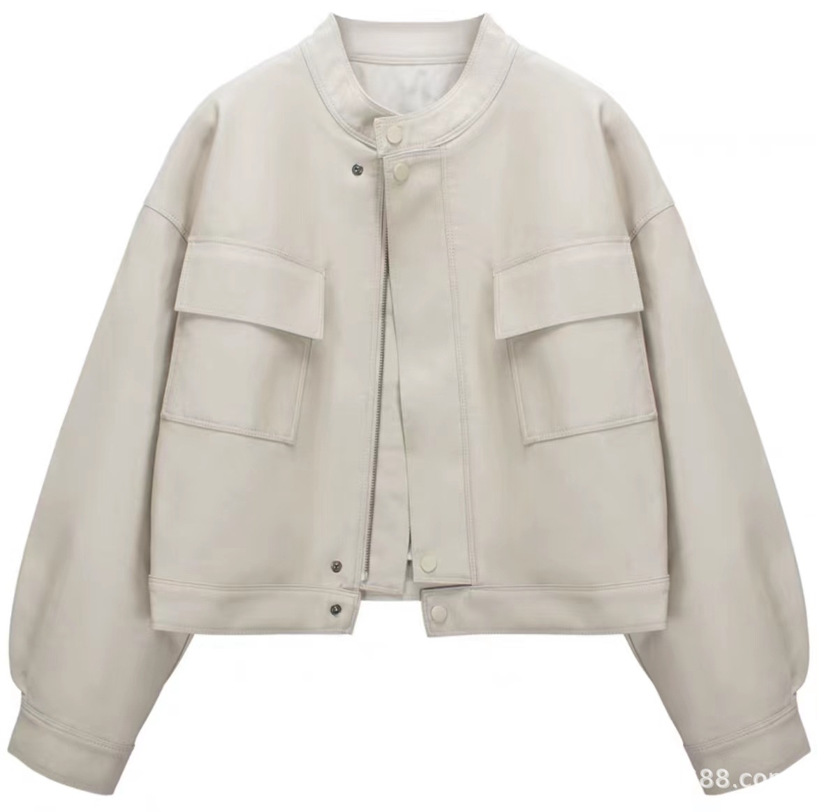 | nameOriginal | Leather Jacket Women's Short 2023 New Fashion Vertical Collar Motorcycle Jacket Hong Kong Style Casual Women's Top Popular |