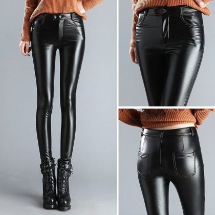 | nameOriginal | Leather pants for women fleece-lined thick high waist stretch autumn and winter New plus size slim fit slimming skinny pants outer wear leggings for women |