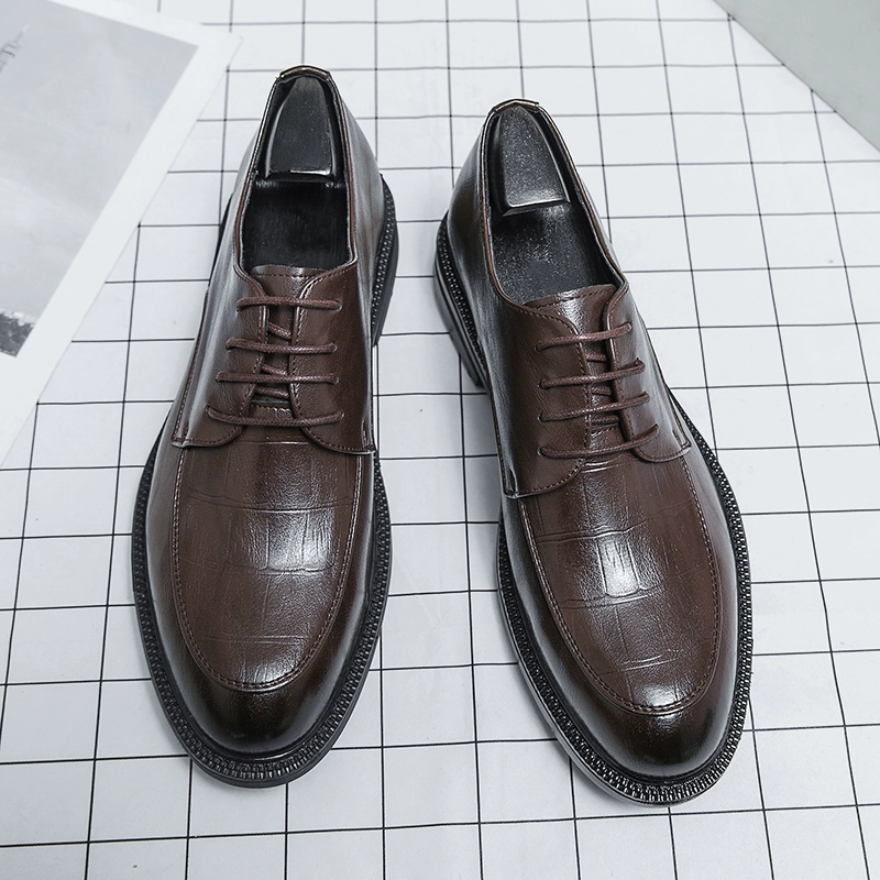 Leather shoes for men in winter British style men's formal casual business thick-soled black groom and groomsmen suit leather shoes