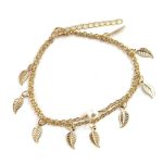 Leaves Pendant Imitation Pearl Lady Double-layer anklets Wholesale