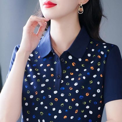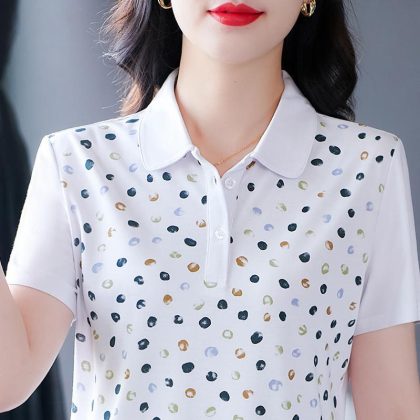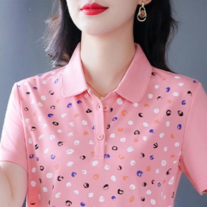 Leck Short-sleeved T-shirt Women's 2024 Summer New Fashionable Age-reducing Women's Led-up Top Loose T-shirt Polo Shirt