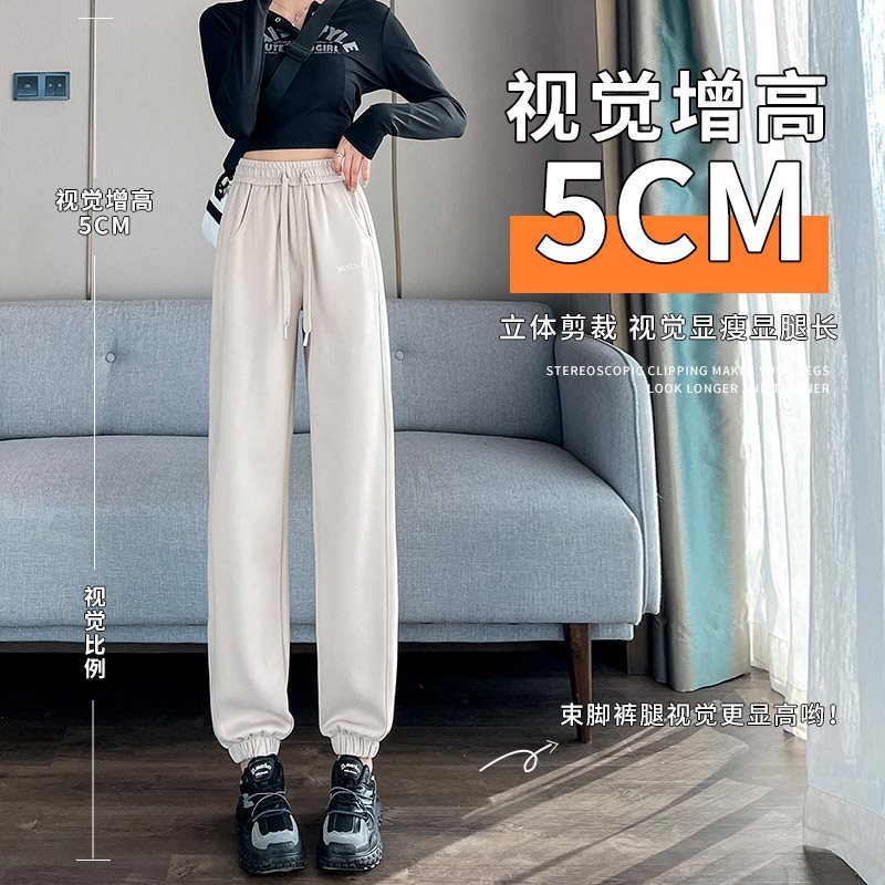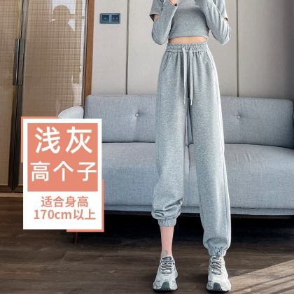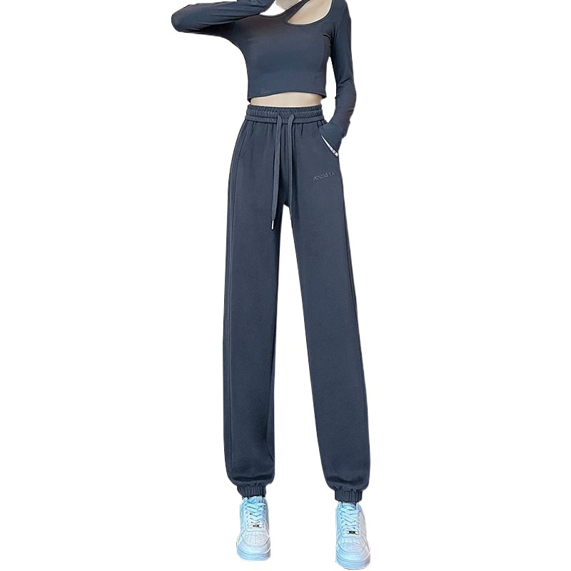 Leg 2024 Casual Pants New Style Sweatpants Sports Pants Women's Spring and Autumn Grey Thin Summer Small Western Style Straight Pants