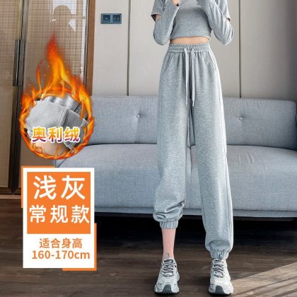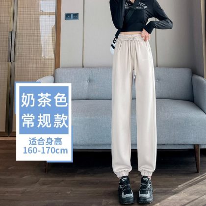 الساق 2024 سراويل تقليدية نمط جديد Sweatpants السراويل الرياضية المرأة الربيع والخريف رمادي رقيقة الصيف الصغيرة النمط الغربي السراويل المستقيمة