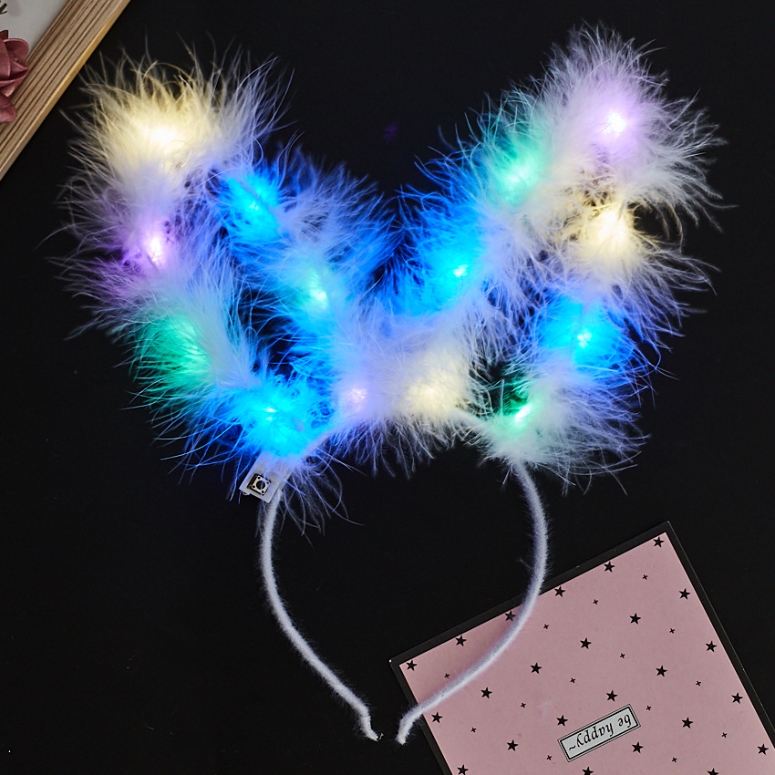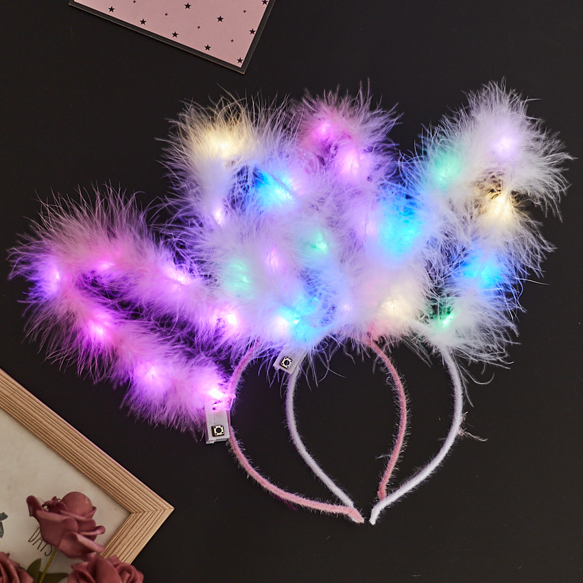 | nameOriginal | Lengthened 15cm feather rabbit ears luminous headband concert night market stall toy push small gifts wholesale |