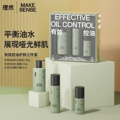 مجموعة Li Ran الرجالية الفعالة للتحكم في الزيت مكونة من ثلاث قطع، منظف لطيف للوجه، صندوق هدايا، مجموعة تنظيف وترطيب للعناية بالبشرة