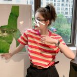 Libeline 5.12 New Products First Add Colorful Striped T Summer Cotton Rainbow Joker Short-sleeved Shirt Top