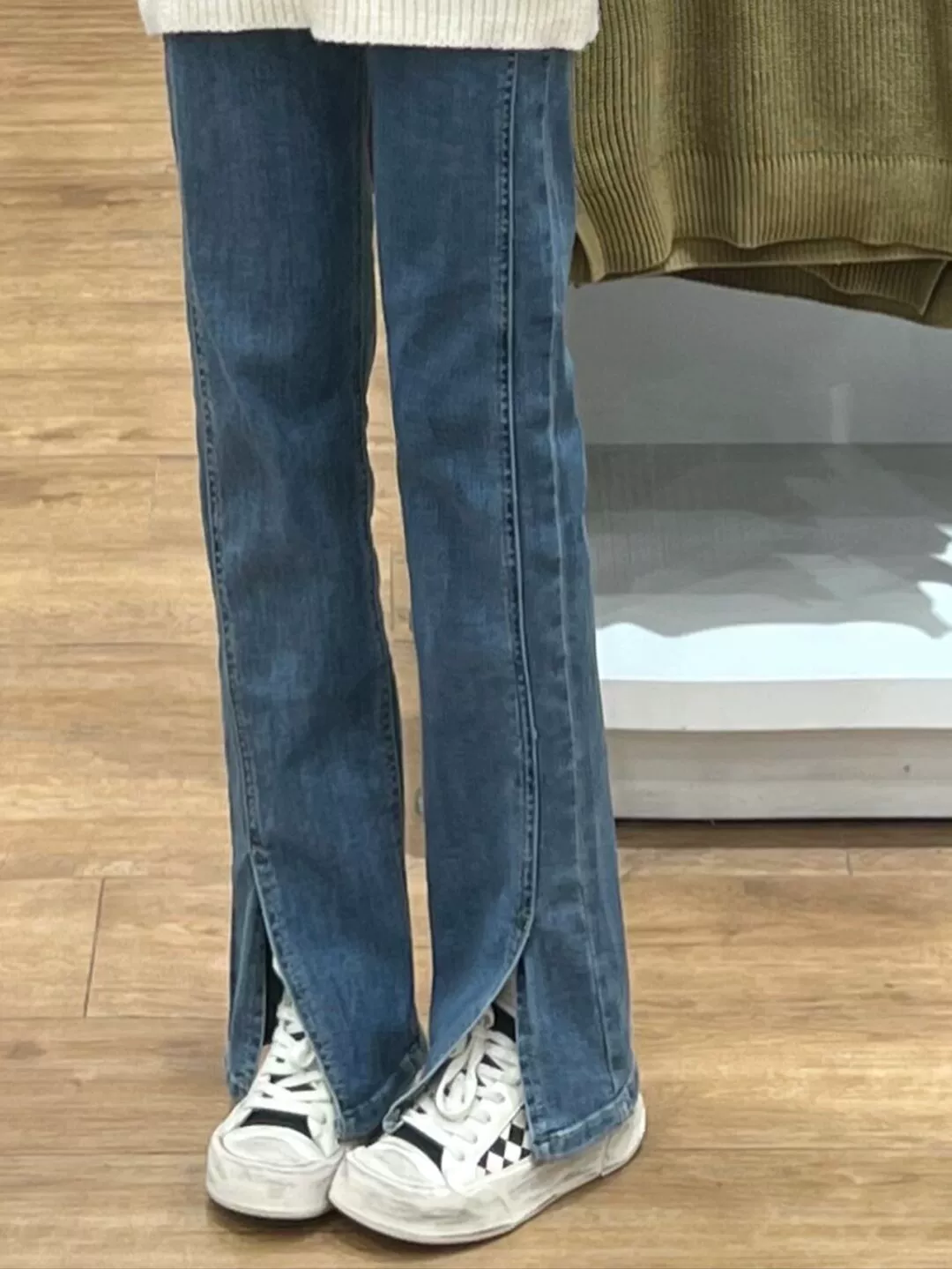| nameOriginal | Light blue slit spring and summer high-waisted wide-leg jeans |