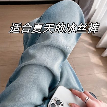 | nameOriginal | light blue Tencel Jeans Women's Summer Thin chubby girl Pear-Shaped High-Waist Loose Slimming Ice Silk Wide-Leg Pants |