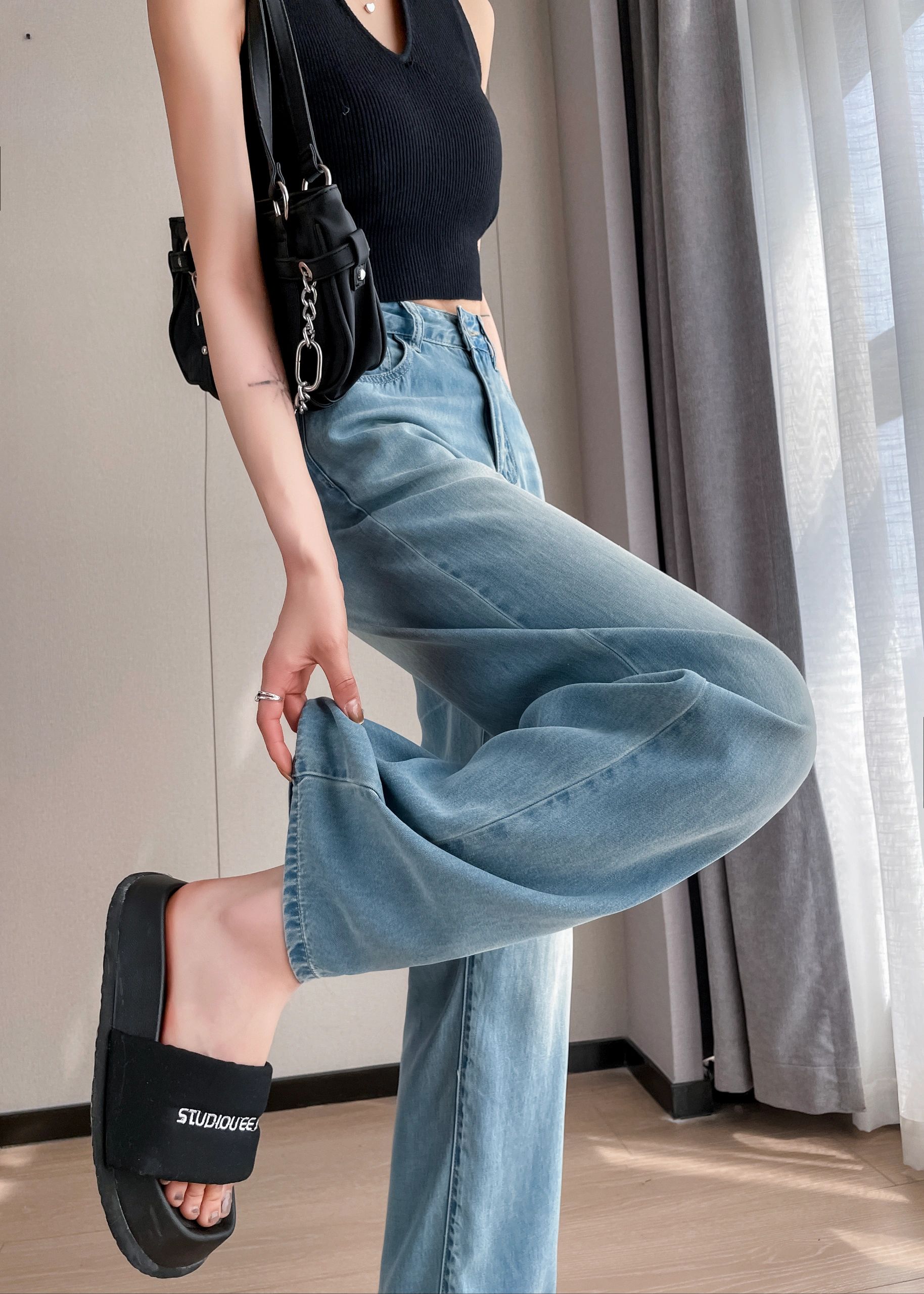| nameOriginal | light blue Tencel Jeans Women's Summer Thin plus size Chubby Girl mm High Waist Straight Tube Slimming Pants |