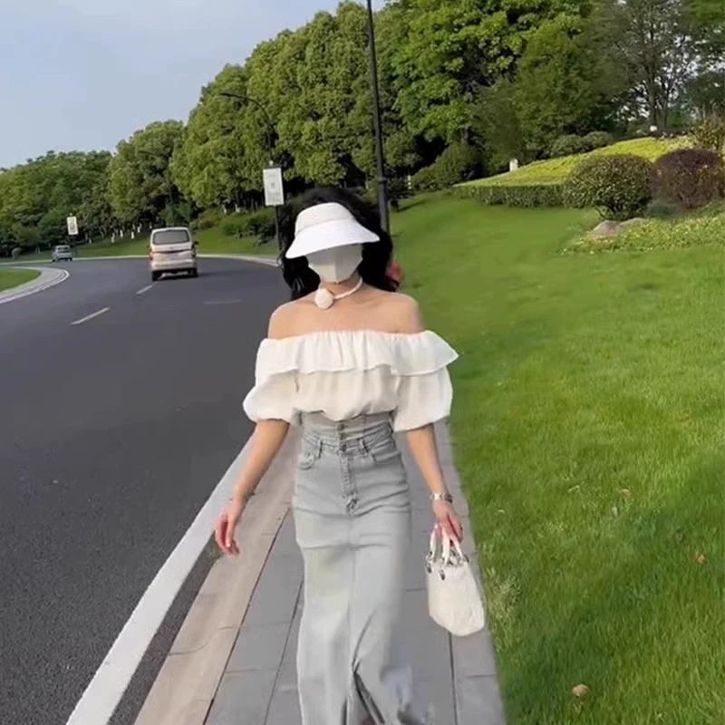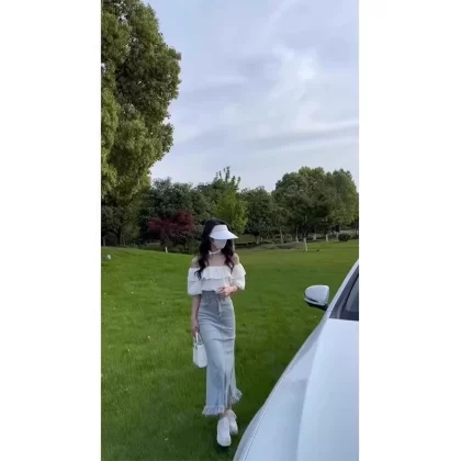 | nameOriginal | Light color early spring denim skirt for petite women |