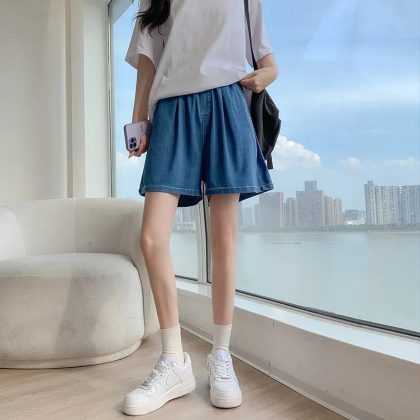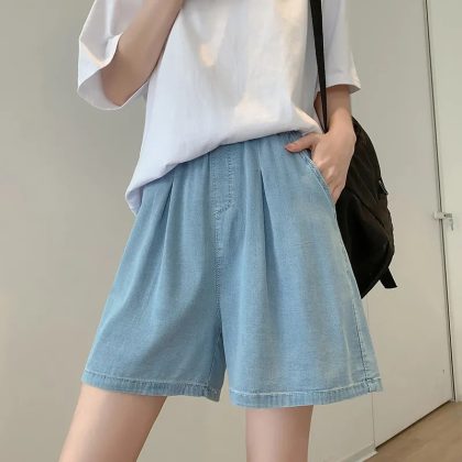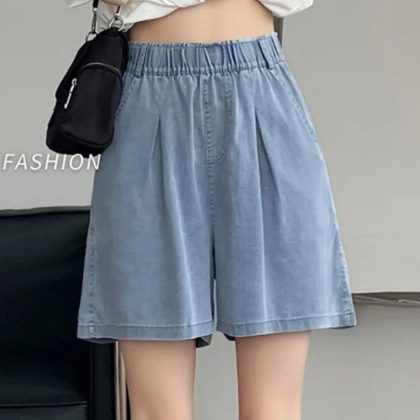 | nameOriginal | Light Color Retro High Waist Soft Denim Shorts Women's Summer Thin Ice Silk Cool plus size Loose Slimming Wide Leg Pants |