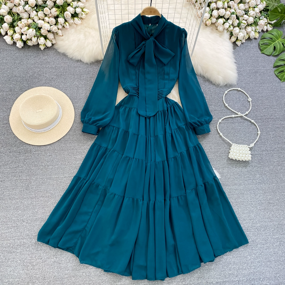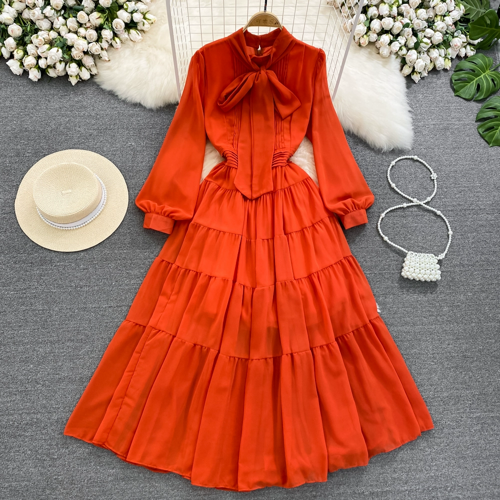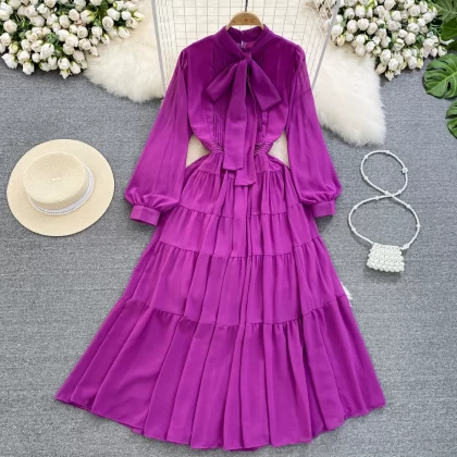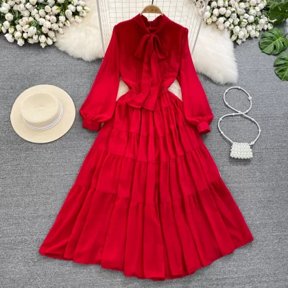 | nameOriginal | Light luxury a-line dress with big swing and bow tie |