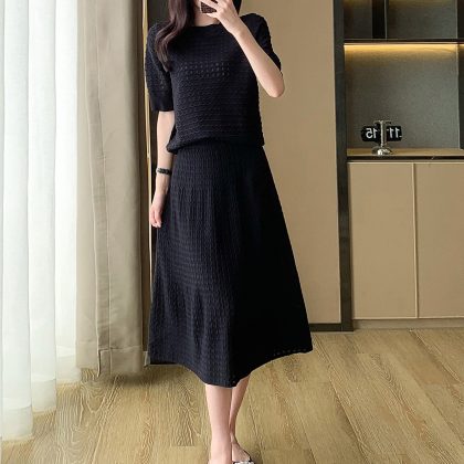 | nameOriginal | Light luxury Chanel style high-grade socialite knitted suit skirt cross-border women's clothing New hollow skirt two-piece suit |