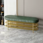 Light luxury entrance door with soft cushions and wrought iron shoe changing stool