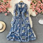 فاتح فاخر الجنية شبكة زرقاء قائمة بذاتها التطريز