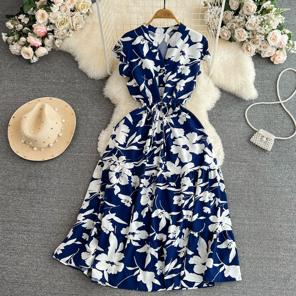 | nameOriginal | Light luxury flying sleeve V-neck A-line elegant printed dress |