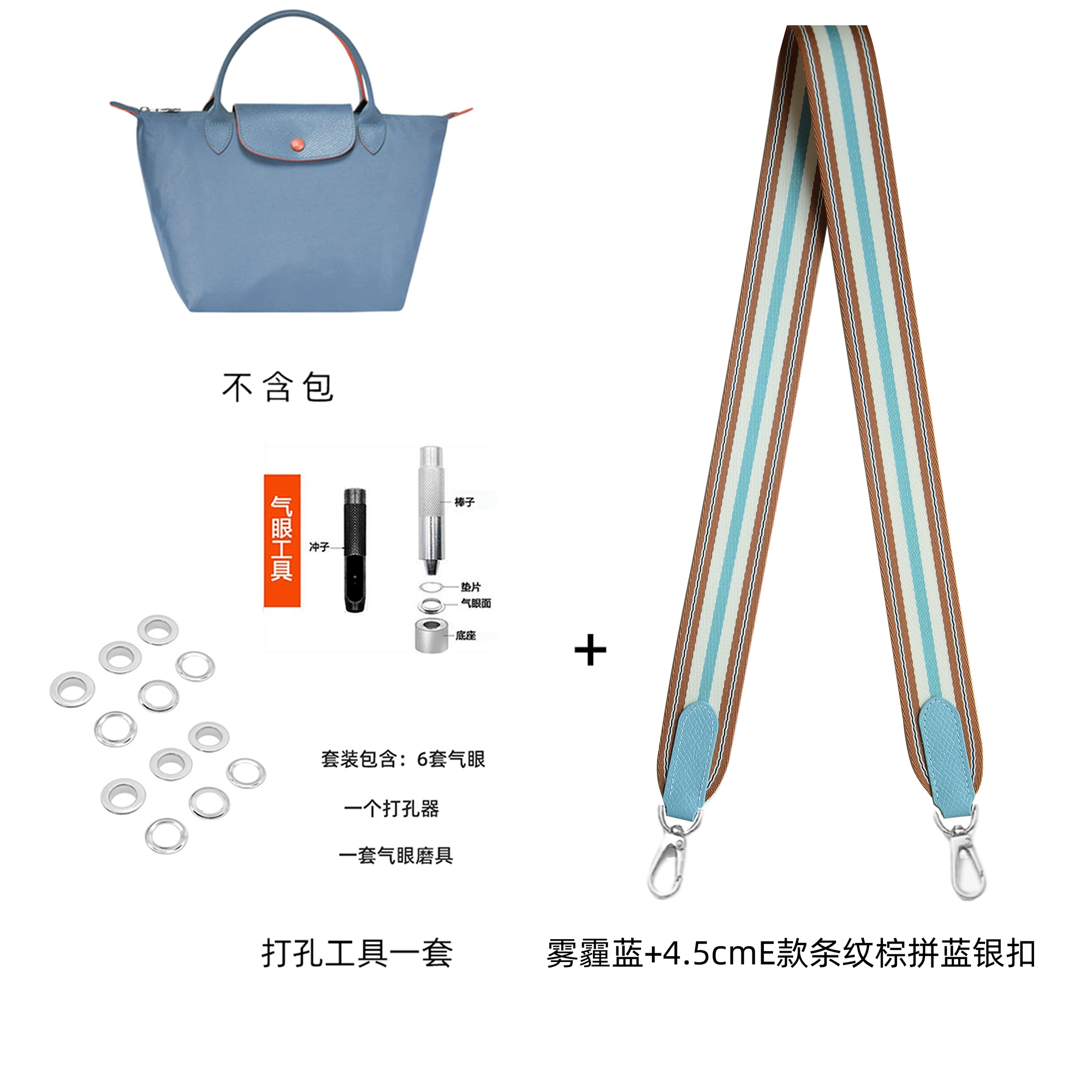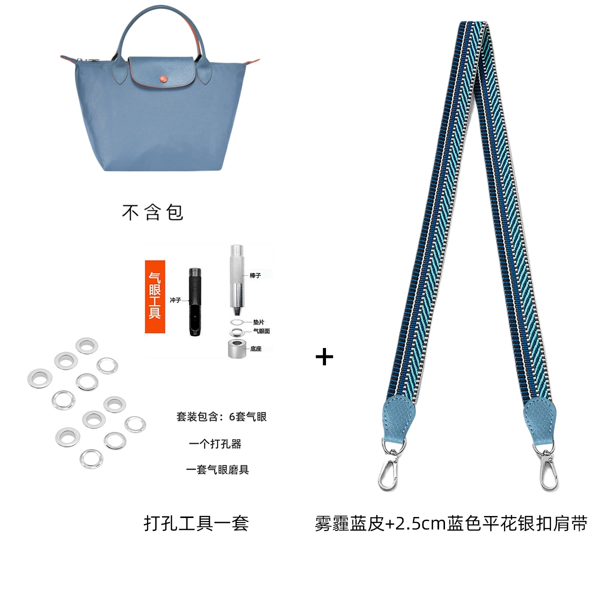 Light luxury Longxiang small haze blue punch-free bag strap