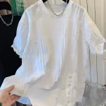 | nameOriginal | Light luxury niche irregular pleated short-sleeved shirt tops women's T-shirts loose to cover the flesh 2024 summer new style |
