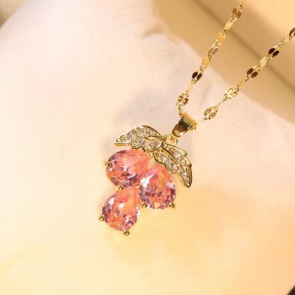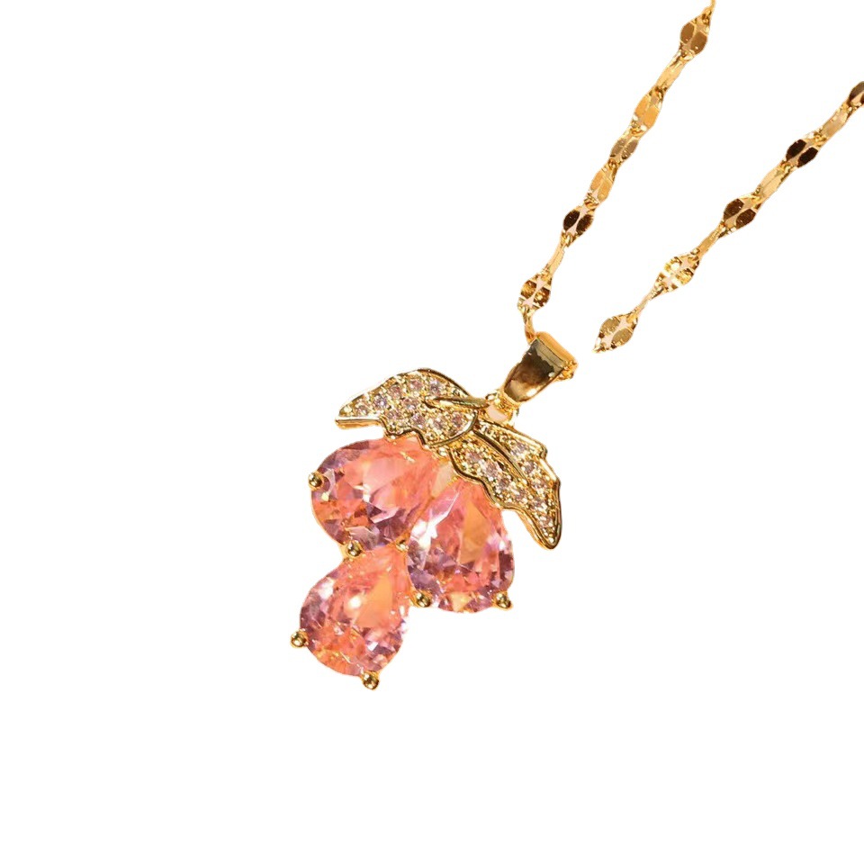 Light Luxury Purple Diamond Grape Titanium Steel Necklace 2023 New Micro Zircon Fruit Necklace Fashion Women's Pendant Necklace