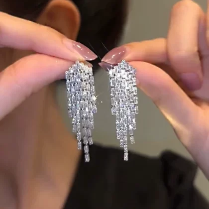 Light luxury tassel earrings for women ins 925 silver needle zircon