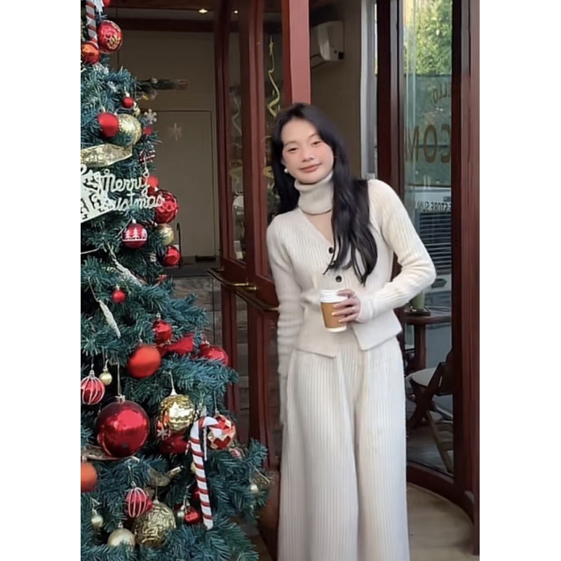 | nameOriginal | Light mature style, a and chic knitted suit women's autumn and winter clothes with a set of fashionable casual wide-leg pants two-piece set |