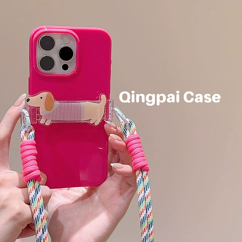 | nameOriginal | Light rose red dachshund dog back clip crossbody lanyard suitable for Apple 15promax mobile phone case iphone13 new 16pro female 12 solid color ins style 14 cute cartoon 11 all-inclusive soft shell |