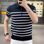 Lightly Mature Men's Ice Silk Short-sleeved Polo Shirt Knitted T-shirt 2024 New Summer Personality Striped Lassel Trend