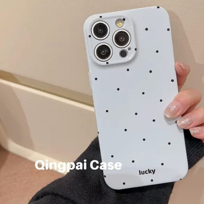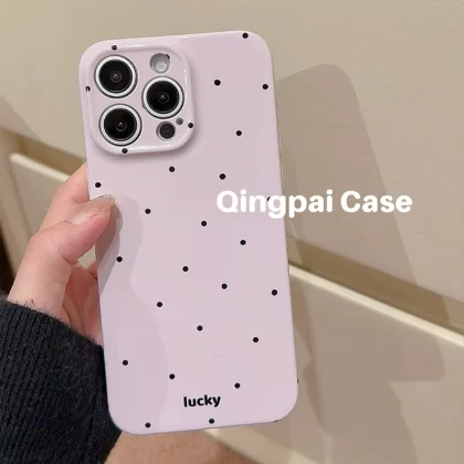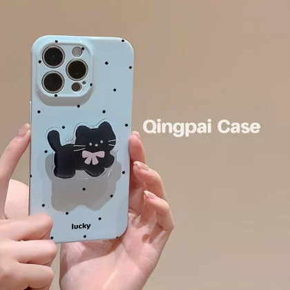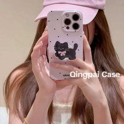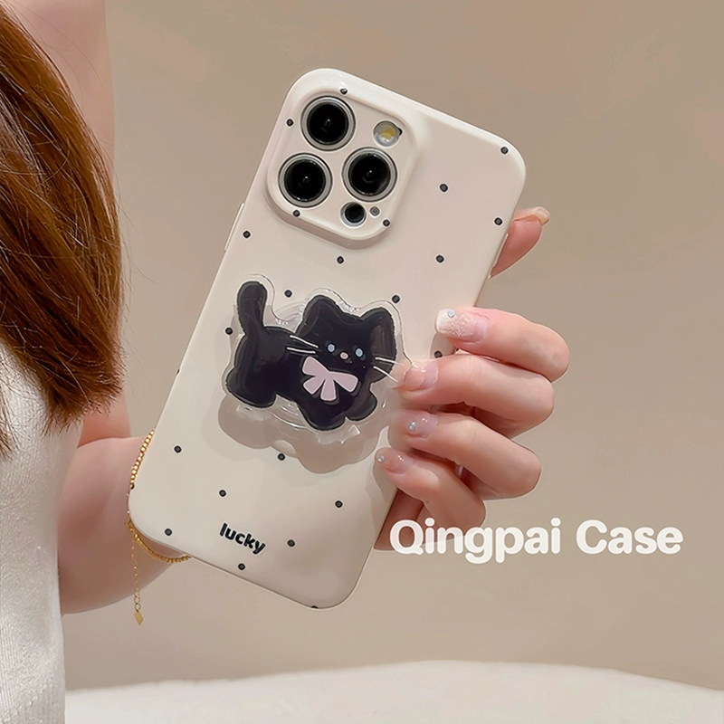 Lightweight ins solid color polka dot cat holder suitable for Apple 15promax mobile phone case iphone13 new 16pro women's 12 gentle cream 14 Korean simple girl 11 all-inclusive soft shell