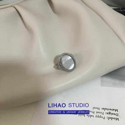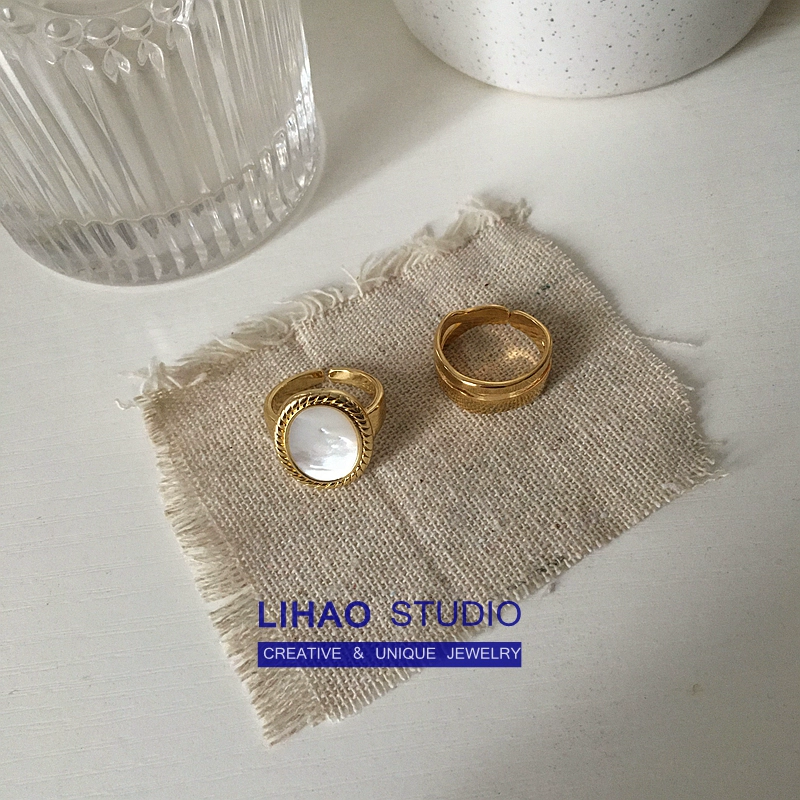 LIHAO المتخصصة الرجعية الخفيفة الفاخرة نسخة واسعة البيضاوي الأبيض خاتم أم اللؤلؤ المرأة INS العصرية شخصية الباردة نمط حلقة مفتوحة