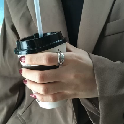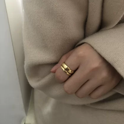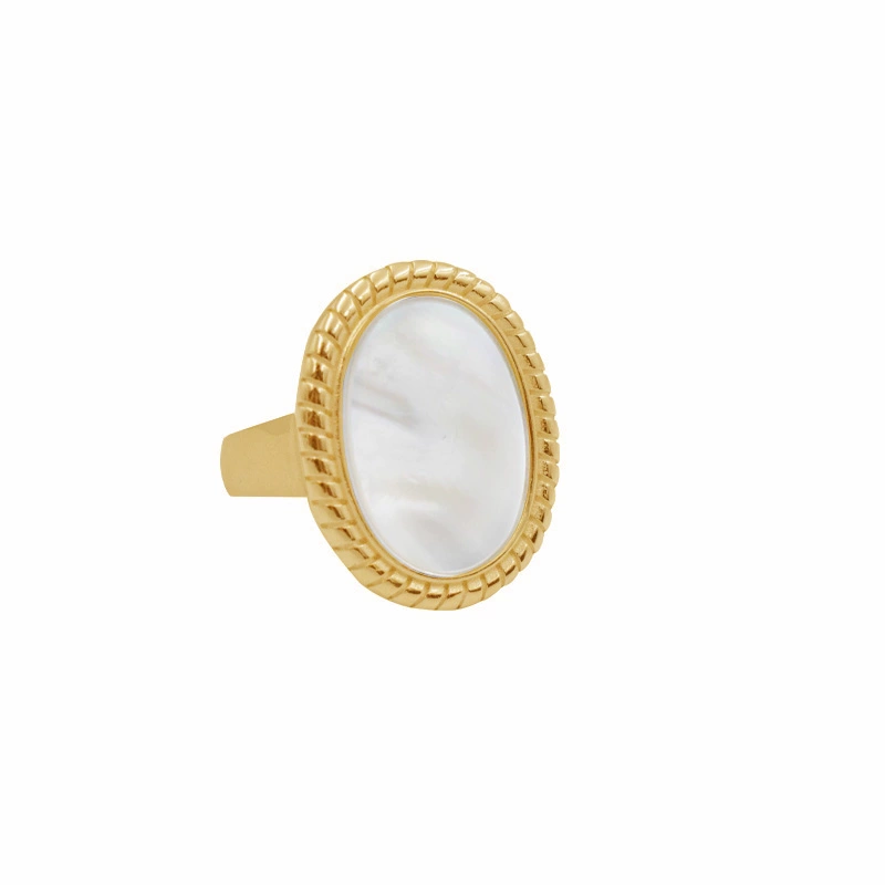 LIHAO niche retro light luxury wide version oval white mother-of-pearl ring women's INS trendy personality cold style open ring