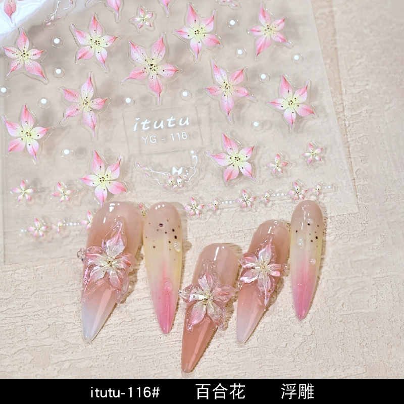 Lily Flower Embossed Jelly Fairy Pattern Nail Art Sticker