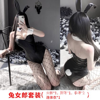Lin Linting's New Sexy Underwear Sexy Bunny Double-Layer Hidden Button Open Crotch Jumpsuit Cute Suit 2442