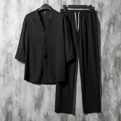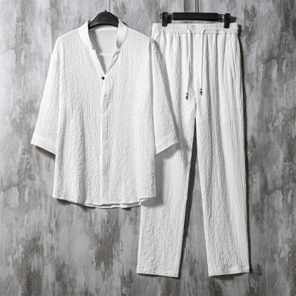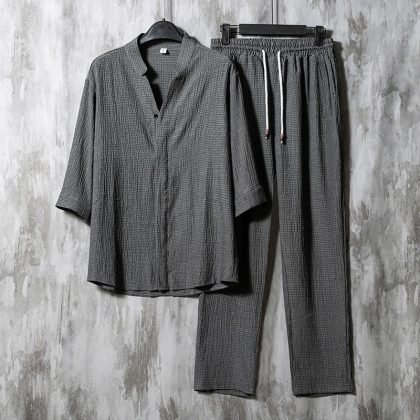 | nameOriginal | Linen Ice Silk suit Men's Summer Loose plus size Casual Sports suit Men's Cotton Linen Five-Sleeve Trousers Two-piece Set |