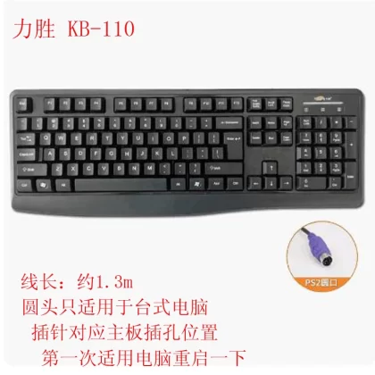 | nameOriginal | Lisheng KB-110 wired USB computer notebook waterproof office game fashion P/2 round mouth keyboard 104 keys |