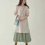 | nameOriginal | Literary original striped summer short-sleeved mid-length skirt |