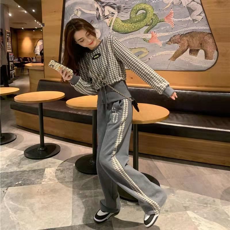 Little Fragrant Style suit Women's Spring and Autumn 2022 New Style Small Stylish Age-reducing Fashion Casual Wide-leg Pants Two-piece Set for Women