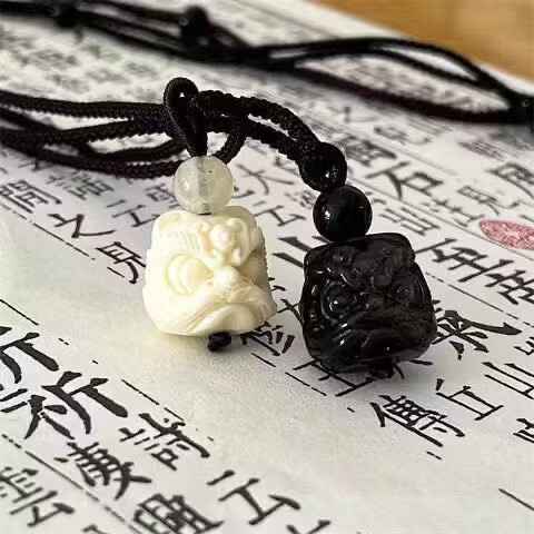 | nameOriginal | Little Red Book Same Style Lion Wake Pendant Silver Obsidian Lion Wake Lock Bone Chain Niche High-end Necklace National Style Fashionable All-match Women |