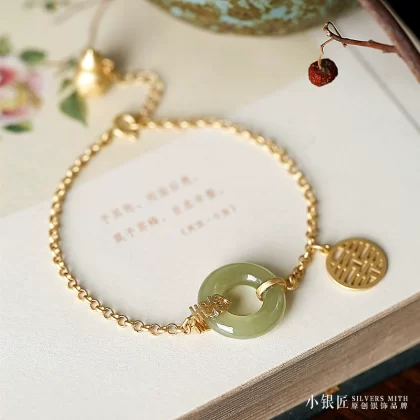 Little silversmith sterling silver gold-plated bracelet for women summer Hetian jade safety buckle niche design high-end light luxury retro bracelet