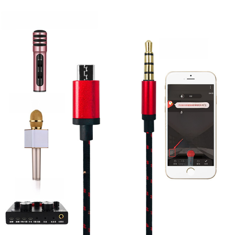 Live broadcast sound card karaoke microphone V8 tuxun audio cable universal five-core braided recording cable audio cable