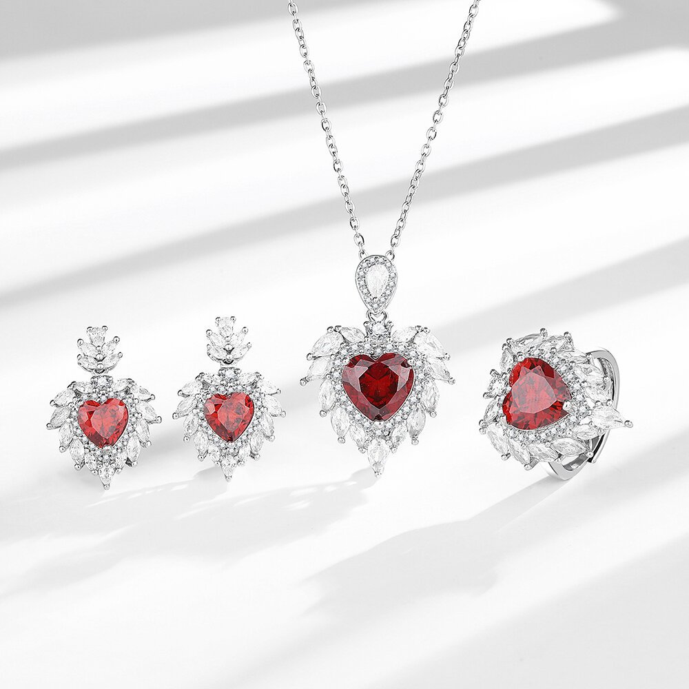 | nameOriginal | Live hot selling colorful treasure high-grade light luxury pigeon red blood temperament jewelry stud earrings ring necklace pendant suit combination |